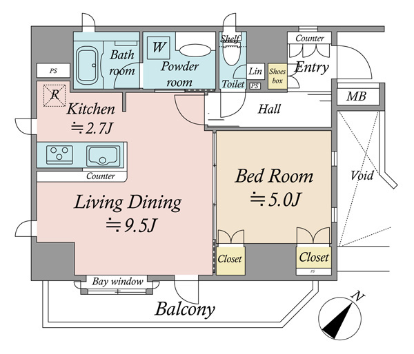 | 専有面積 | 44.89m² | バルコニー面積 | 7.58m² |