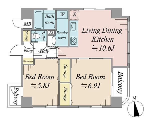 | 専有面積 | 53.35m² | バルコニー面積 | 4.65m² |