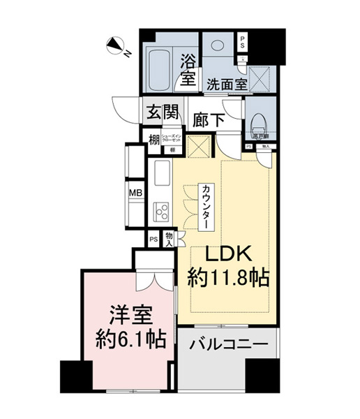 | 専有面積 | 44.66m² | バルコニー面積 | 5.82m² |