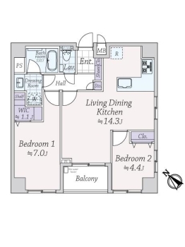 | 専有面積 | 57.68m² | バルコニー面積 | 3.90m² |