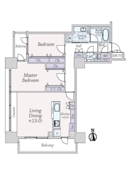 | 専有面積 | 74.09m² | バルコニー面積 | 11.12m² |