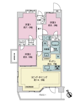 | 専有面積 | 75.64m² | バルコニー面積 | 9.24m² |
