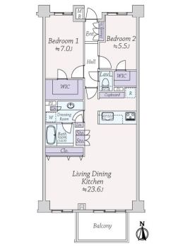 | 専有面積 | 80.36m² | バルコニー面積 | 6.80m² |