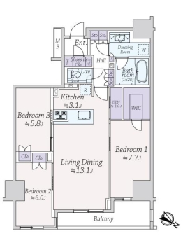 | 専有面積 | 83.73m² | バルコニー面積 | 7.77m² |