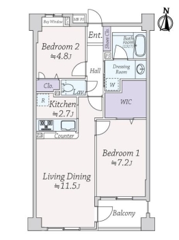 | 専有面積 | 60.48m² | バルコニー面積 | 4.32m² |