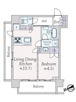 | 専有面積 | 37.10m² | バルコニー面積 | 11.51m² |