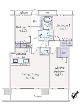 | 専有面積 | 89.38m² | バルコニー面積 | 15.26m² |