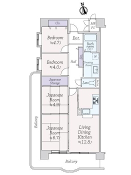 | 専有面積 | 77.72m² | バルコニー面積 | 18.94m² |