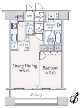 | 専有面積 | 41.70m² | バルコニー面積 | 8.64m² |