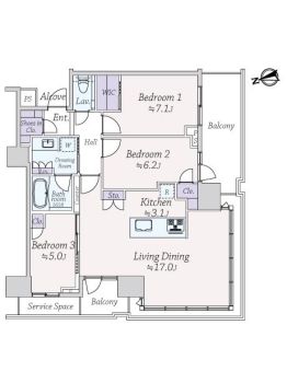| 専有面積 | 83.09m² | バルコニー面積 | 14.45m² |