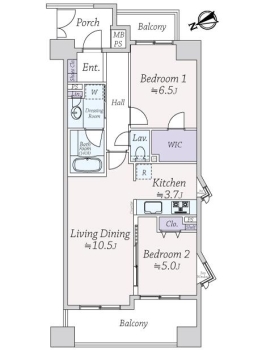 | 専有面積 | 60.26m² | バルコニー面積 | 12.40m² |
