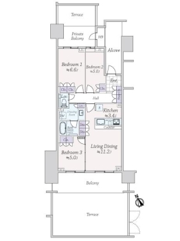| 専有面積 | 71.31m² | バルコニー面積 | 22.30m² |