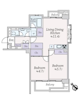 | 専有面積 | 58.18m² | バルコニー面積 | 9.97m² |