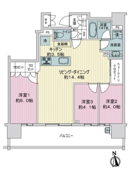 | 専有面積 | 68.91m² | バルコニー面積 | 16.56m² |