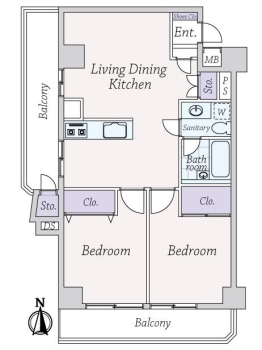 | 専有面積 | 56.08m² | バルコニー面積 | 14.58m² |