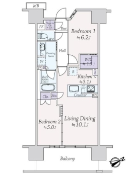 | 専有面積 | 57.36m² | バルコニー面積 | 10.40m² |