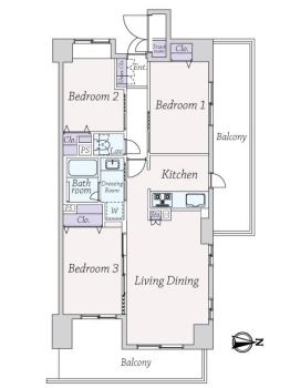 | 専有面積 | 69.33m² | バルコニー面積 | 9.95m² |