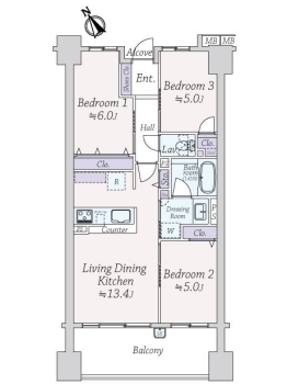 | 専有面積 | 64.71m² | バルコニー面積 | 12.00m² |