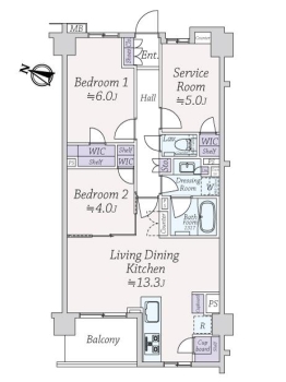 | 専有面積 | 65.00m² | バルコニー面積 | 4.86m² |