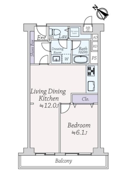 | 専有面積 | 44.45m² | バルコニー面積 | 5.00m² |