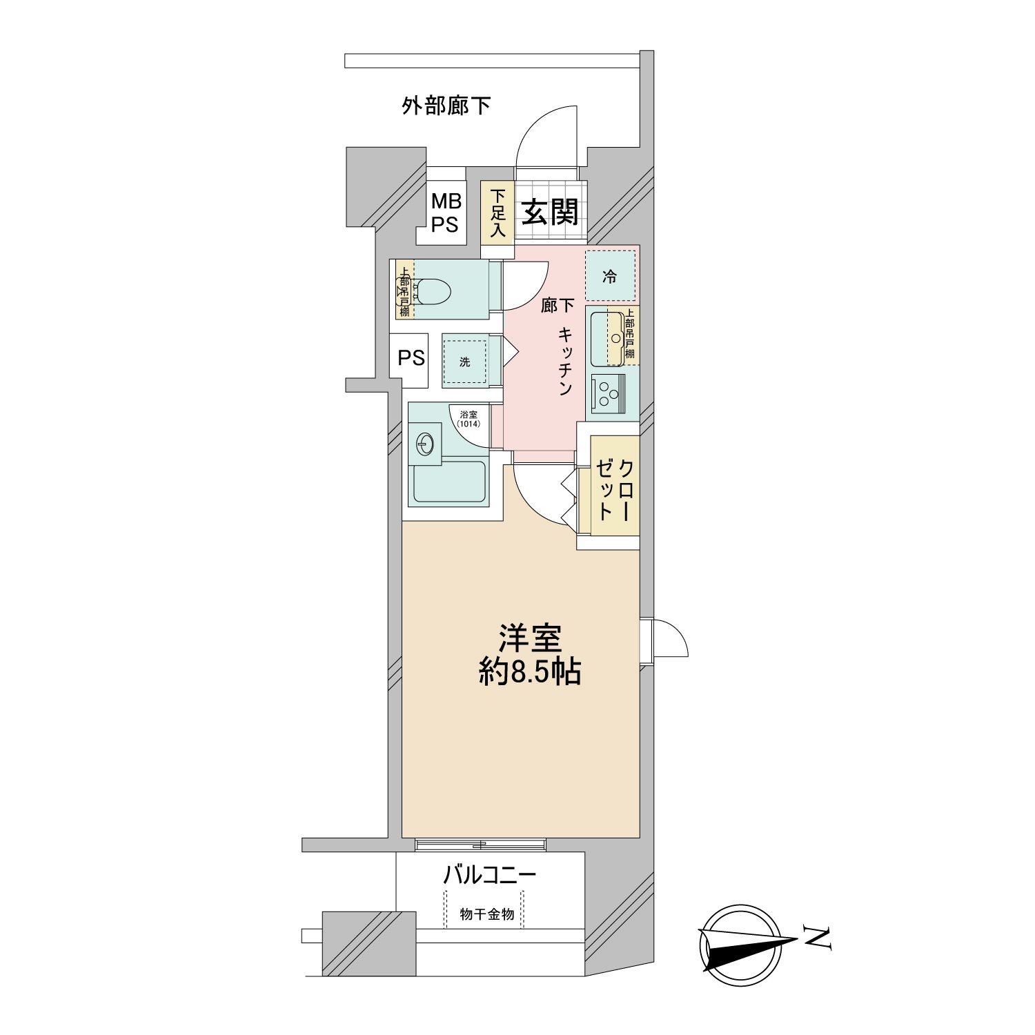 | 専有面積 | 27.20m² | バルコニー面積 | 3.91m² |