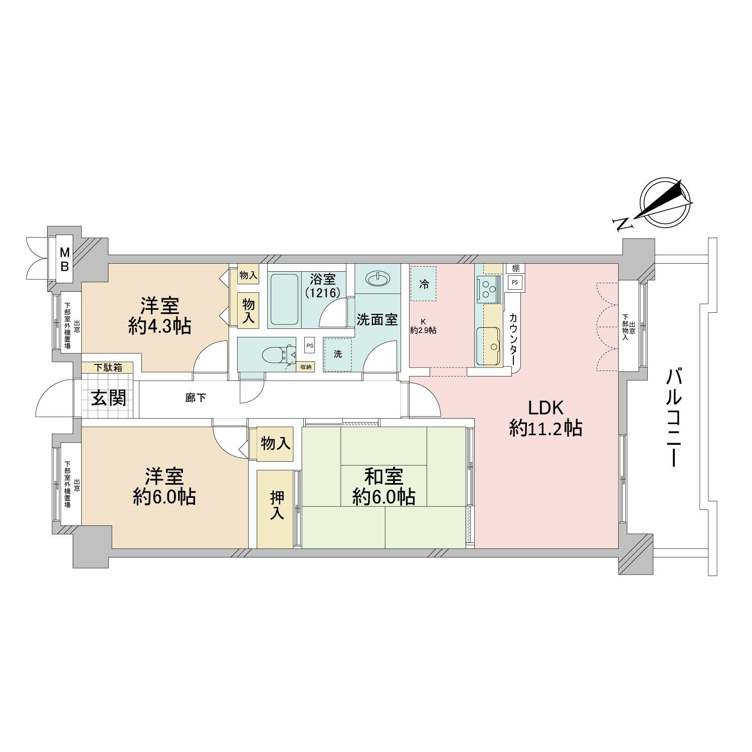 - 専有面積:58.16 m²