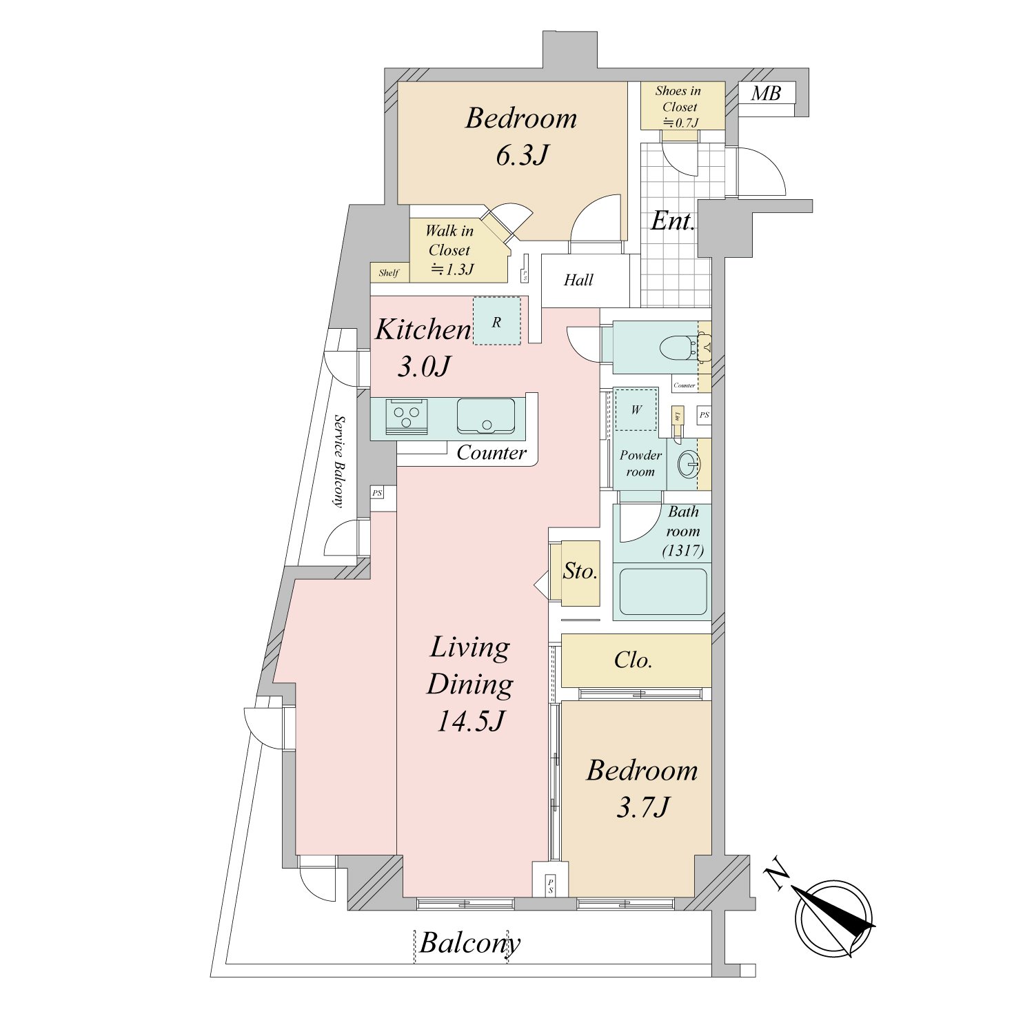 | 専有面積 | 59.10m² | バルコニー面積 | 9.02m² |