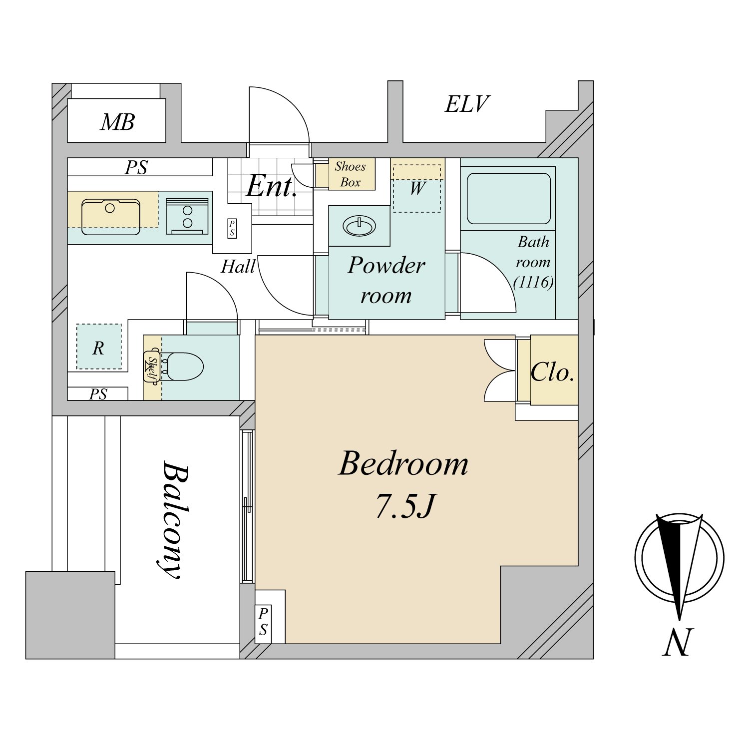 | 専有面積 | 25.64m² | バルコニー面積 | 4.75m² |
