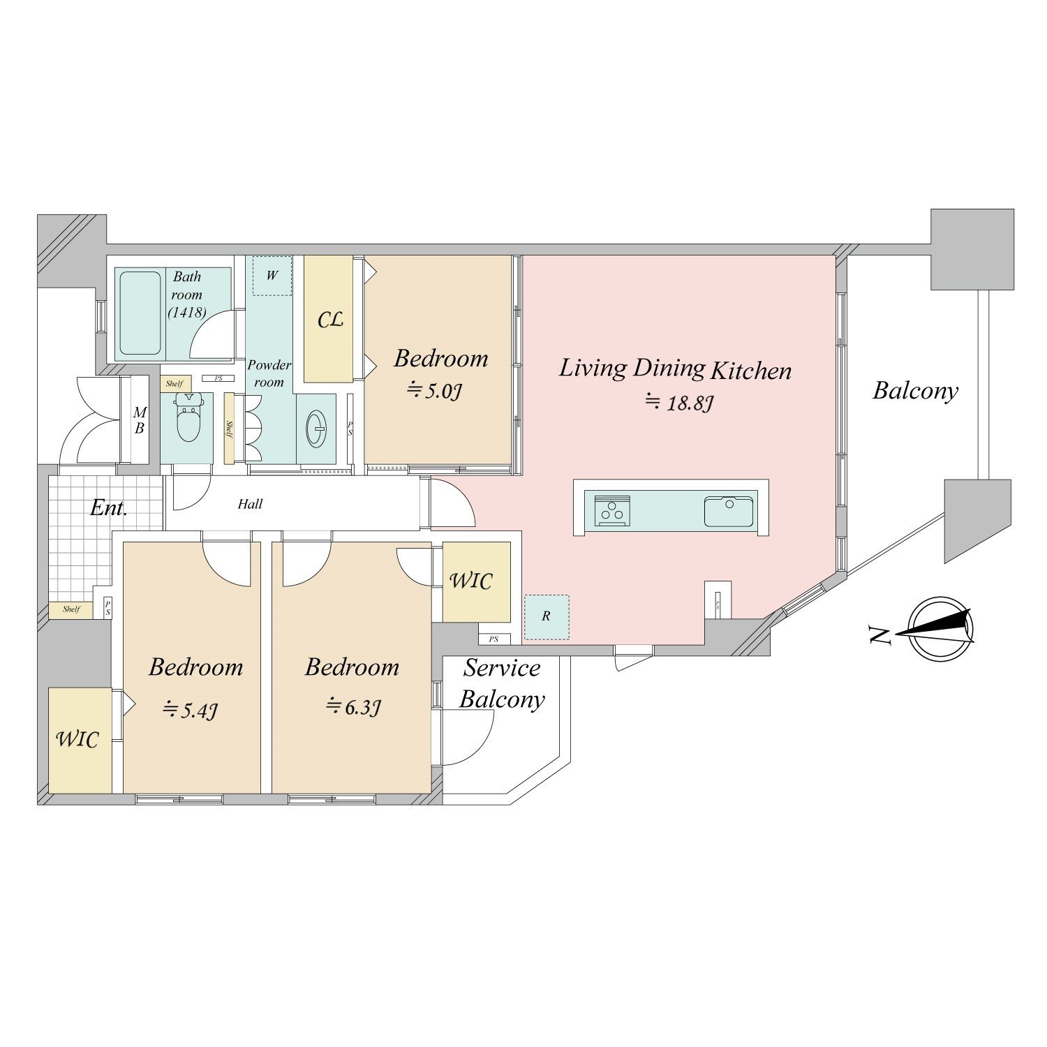 - 専有面積:63.30 m²