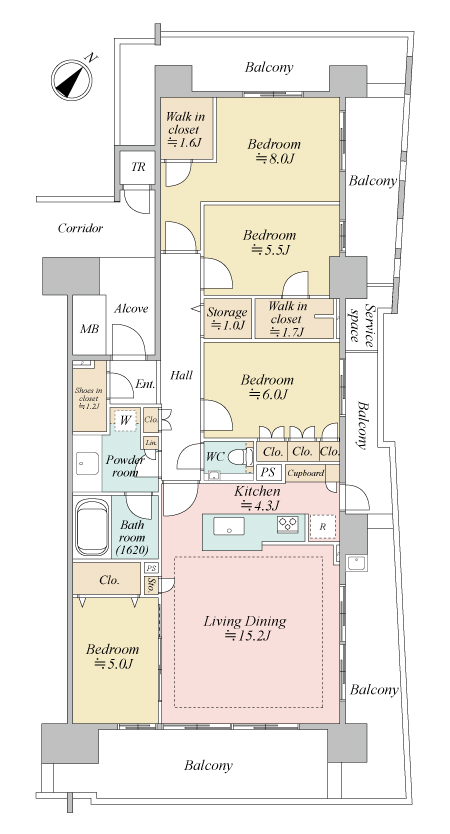 | 専有面積 | 105.34m² | バルコニー面積 | 51.37m² |