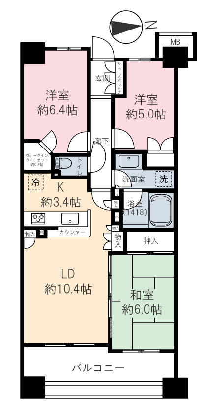 - 専有面積:63.88 m²