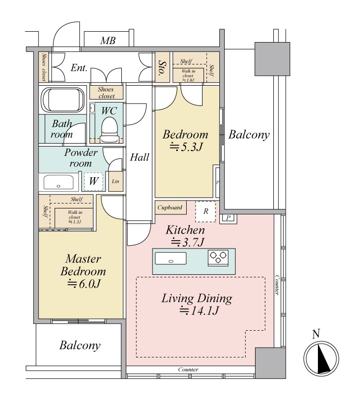 | 専有面積 | 70.74m² | バルコニー面積 | 14.78m² |