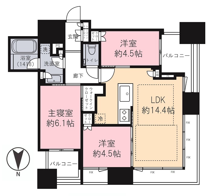 | 専有面積 | 66.24m² | バルコニー面積 | 8.14m² |