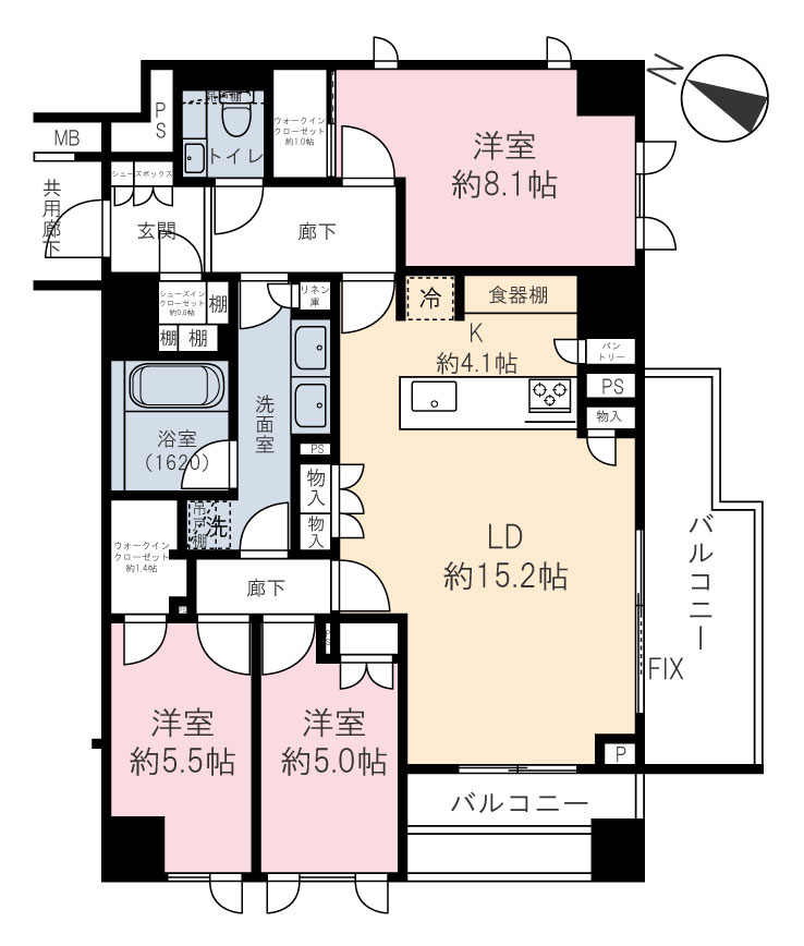 | 専有面積 | 95.38m² | バルコニー面積 | 15.20m² |