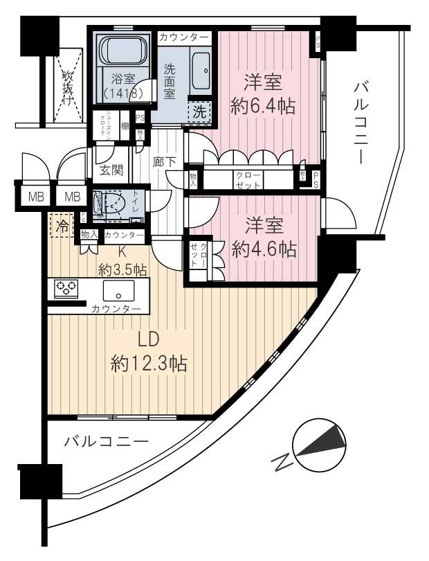 | 専有面積 | 61.58m² | バルコニー面積 | 15.67m² |
