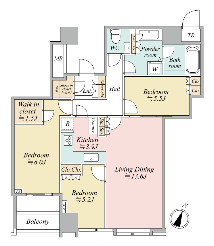 | 専有面積 | 87.03m² | バルコニー面積 | 5.29m² |