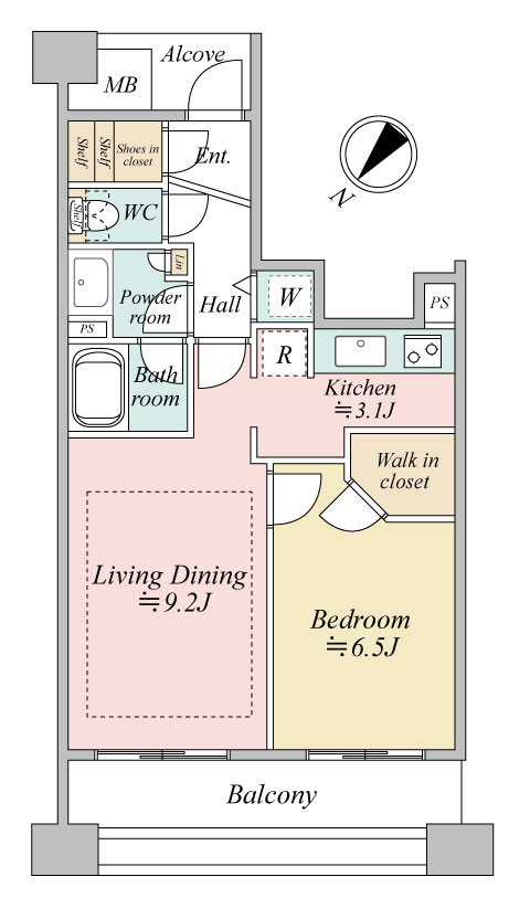 | 専有面積 | 44.66m² | バルコニー面積 | 9.04m² |