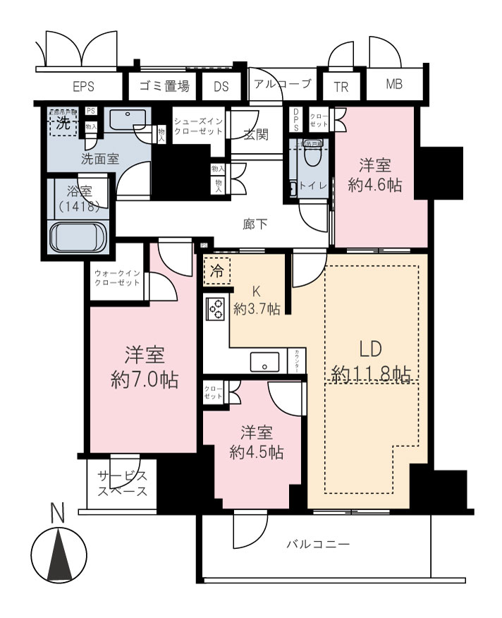 | 専有面積 | 78.42m² | バルコニー面積 | 8.65m² |