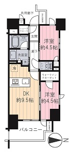 | 専有面積 | 46.00m² | バルコニー面積 | 6.91m² |