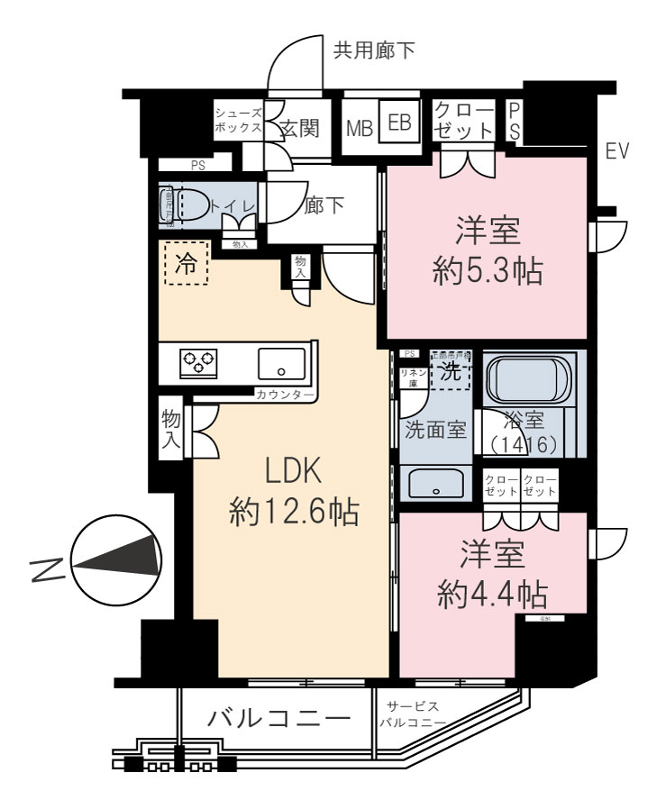 | 専有面積 | 52.61m² | バルコニー面積 | 3.46m² |