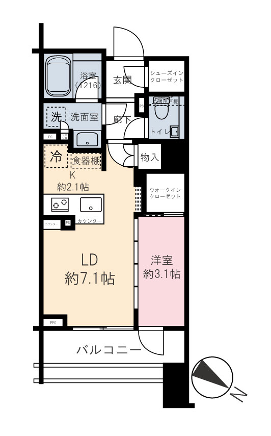 | 専有面積 | 35.08m² | バルコニー面積 | 6.96m² |