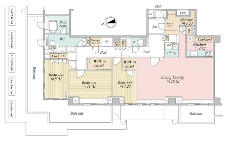 | 専有面積 | 153.92m² | バルコニー面積 | 43.58m² |